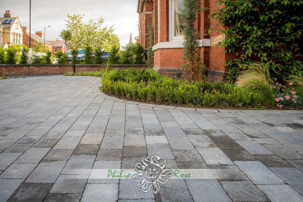 All paving is laid in the same way on a base of compacted hardcore and a bed of gritsand and cement. It is then wet pointed and haunched.